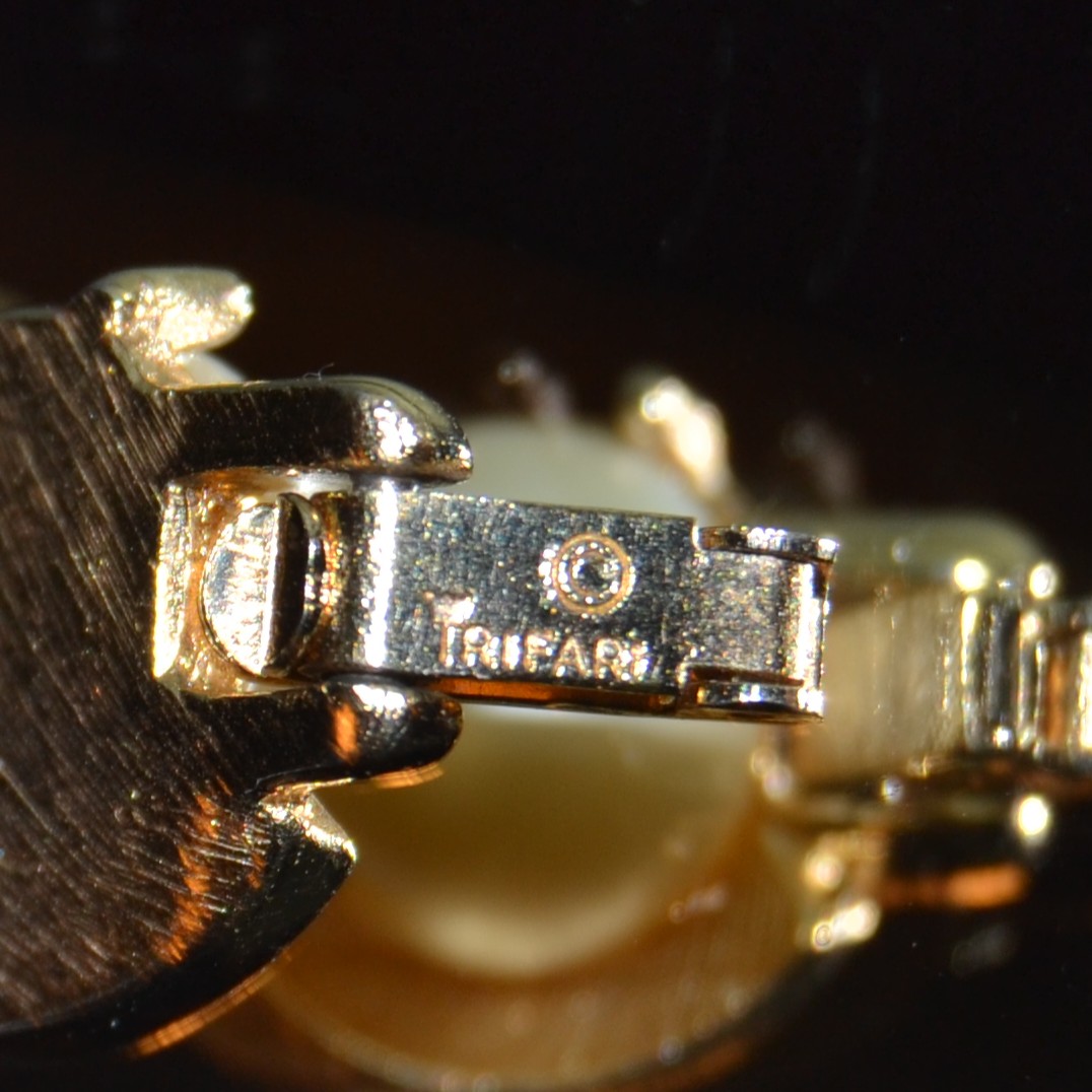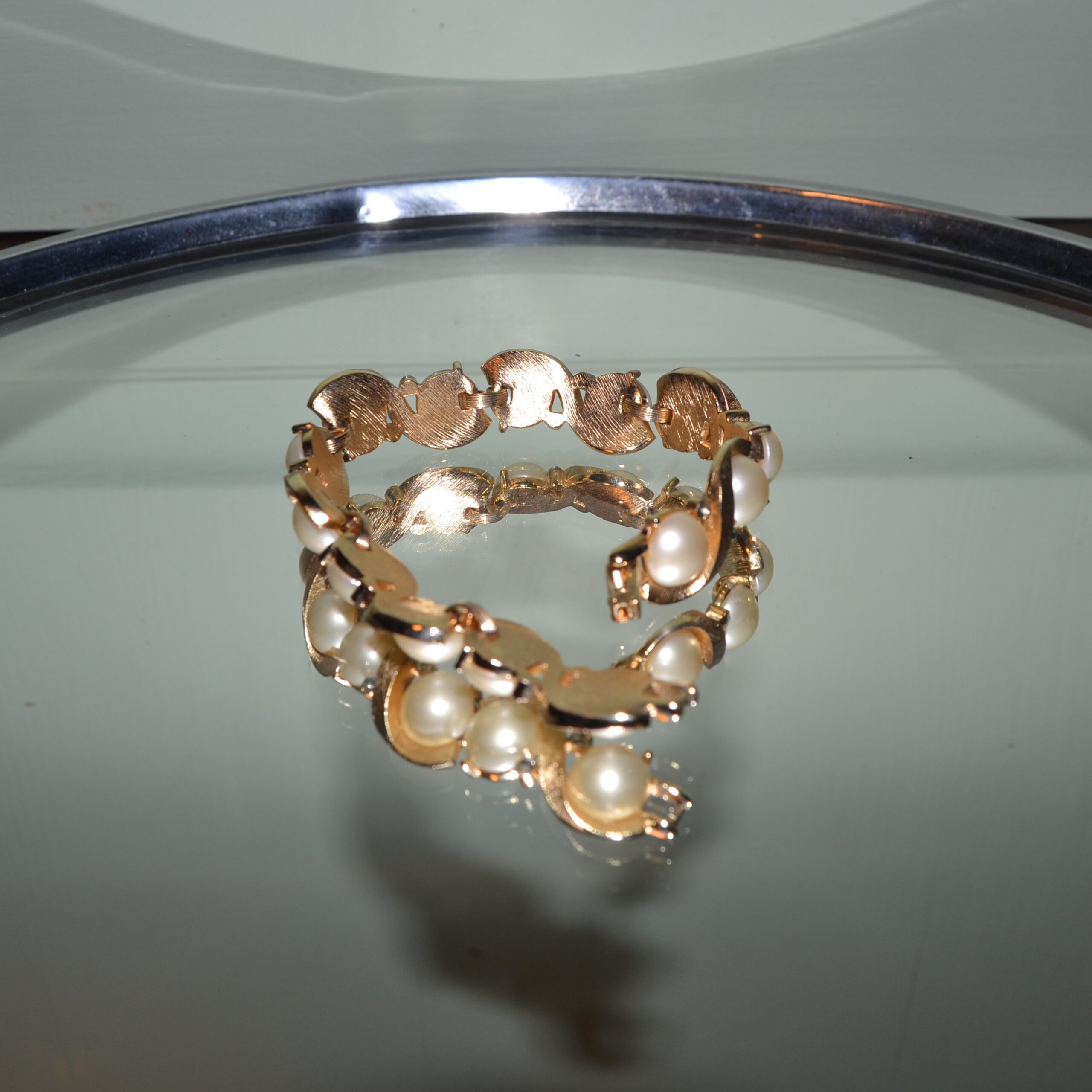 Bracciale vintage TRIFARI anni Sessanta in lega tono oro e perle. Condizioni ottime. Lunghezza da aperto cm.19