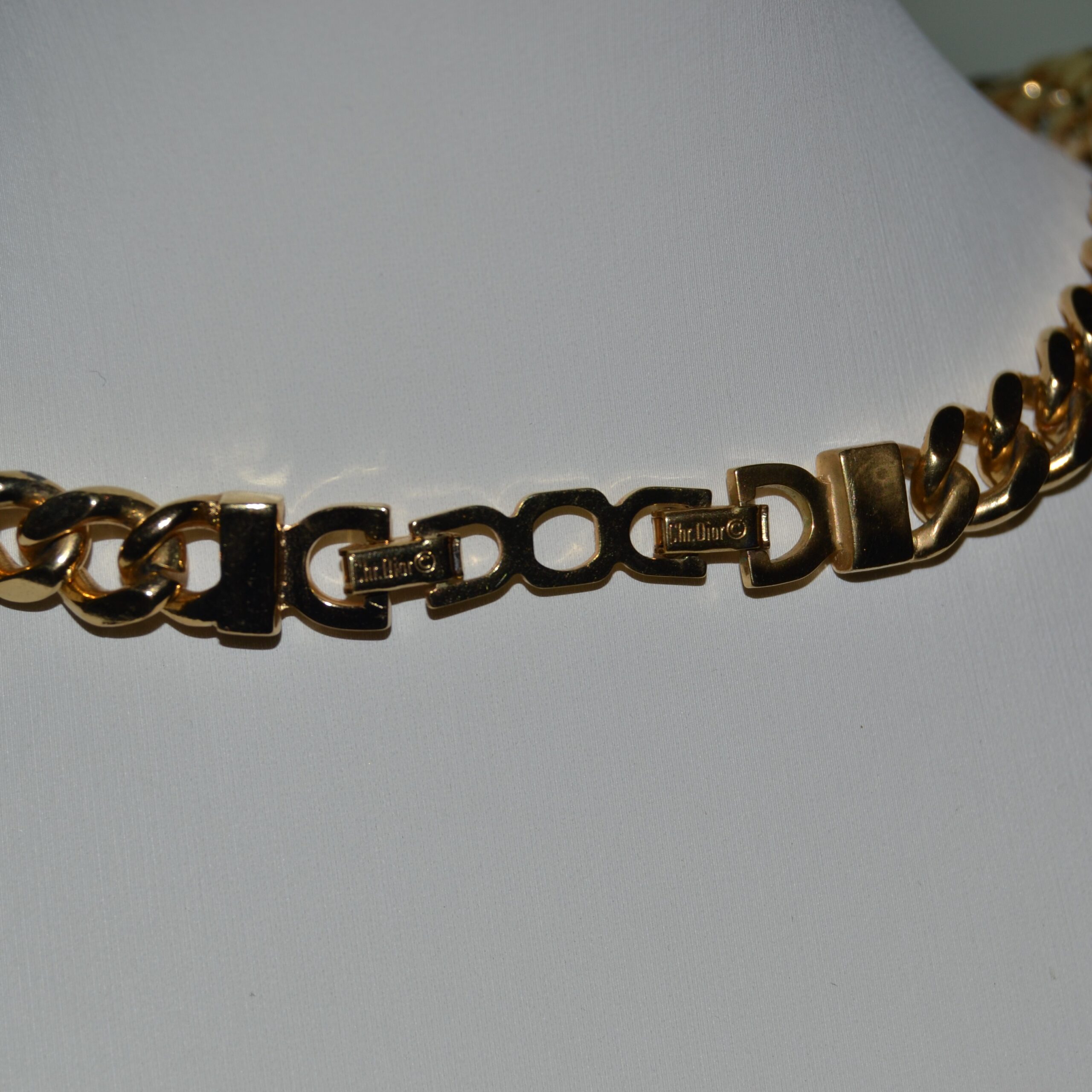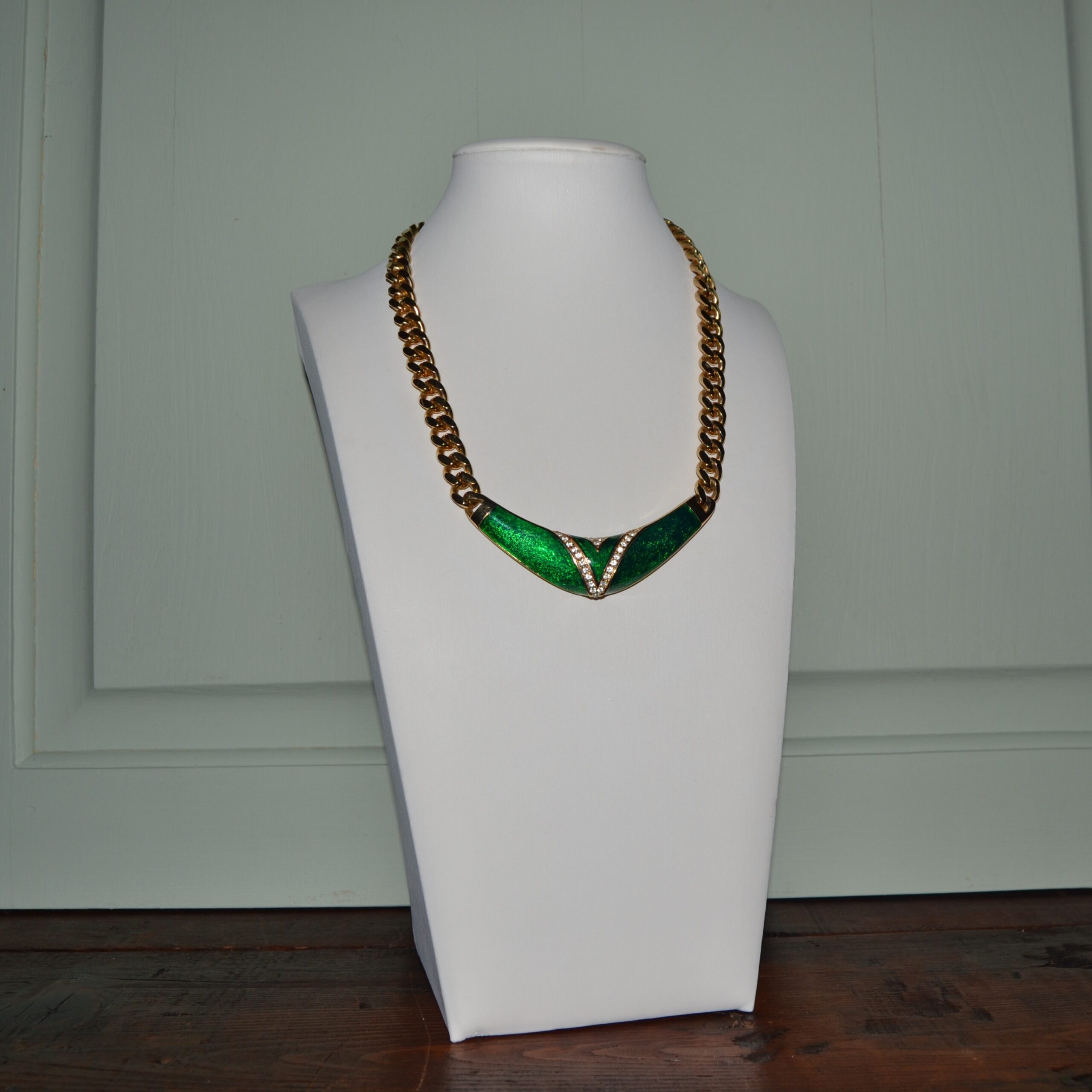 Collana vintage DIOR anni ottanta “LUNA VERDE” in lega tono oro e smalto verde con strass. Condizioni perfette. Marchio Chr.Dior sul retro. Lunghezza max. cm.42,5