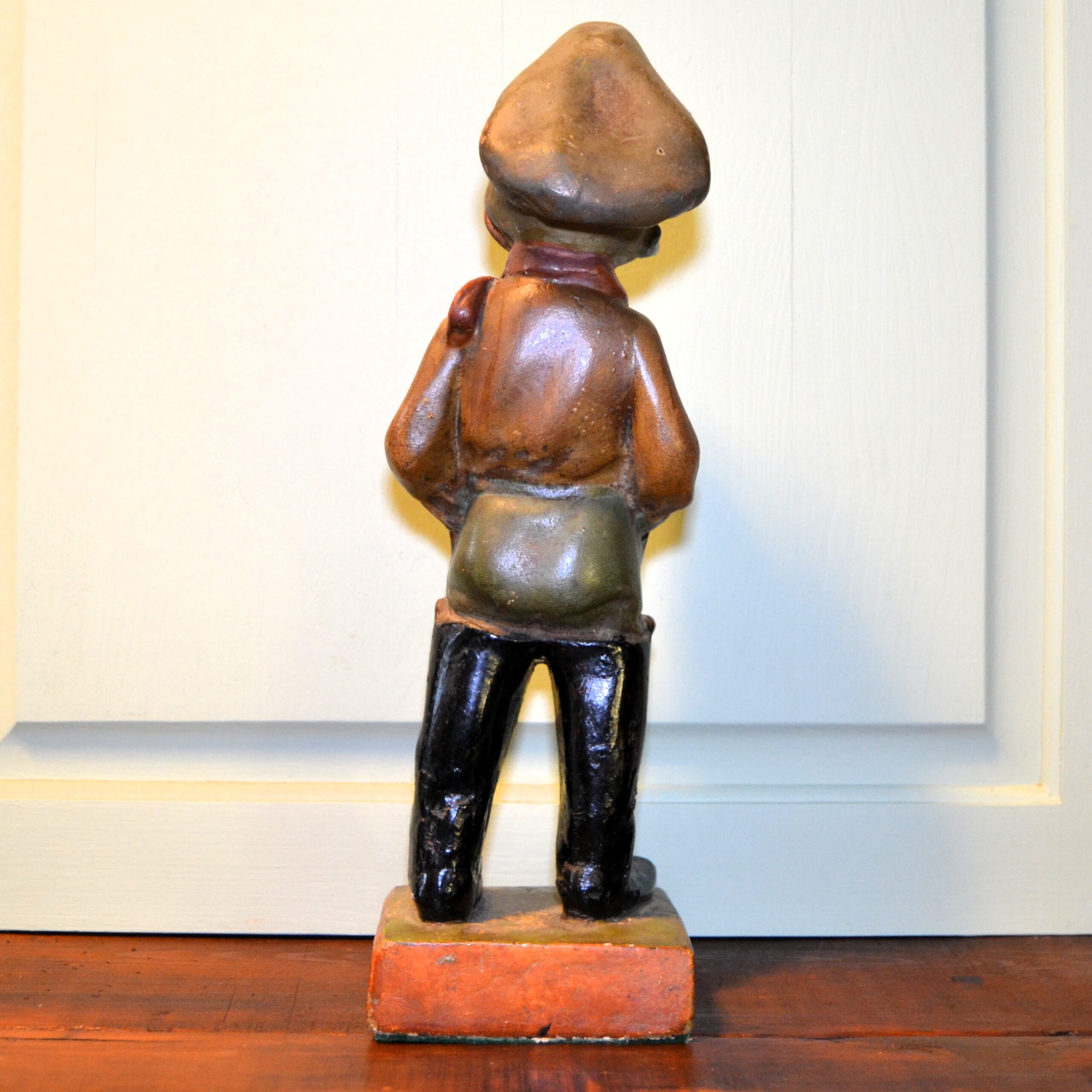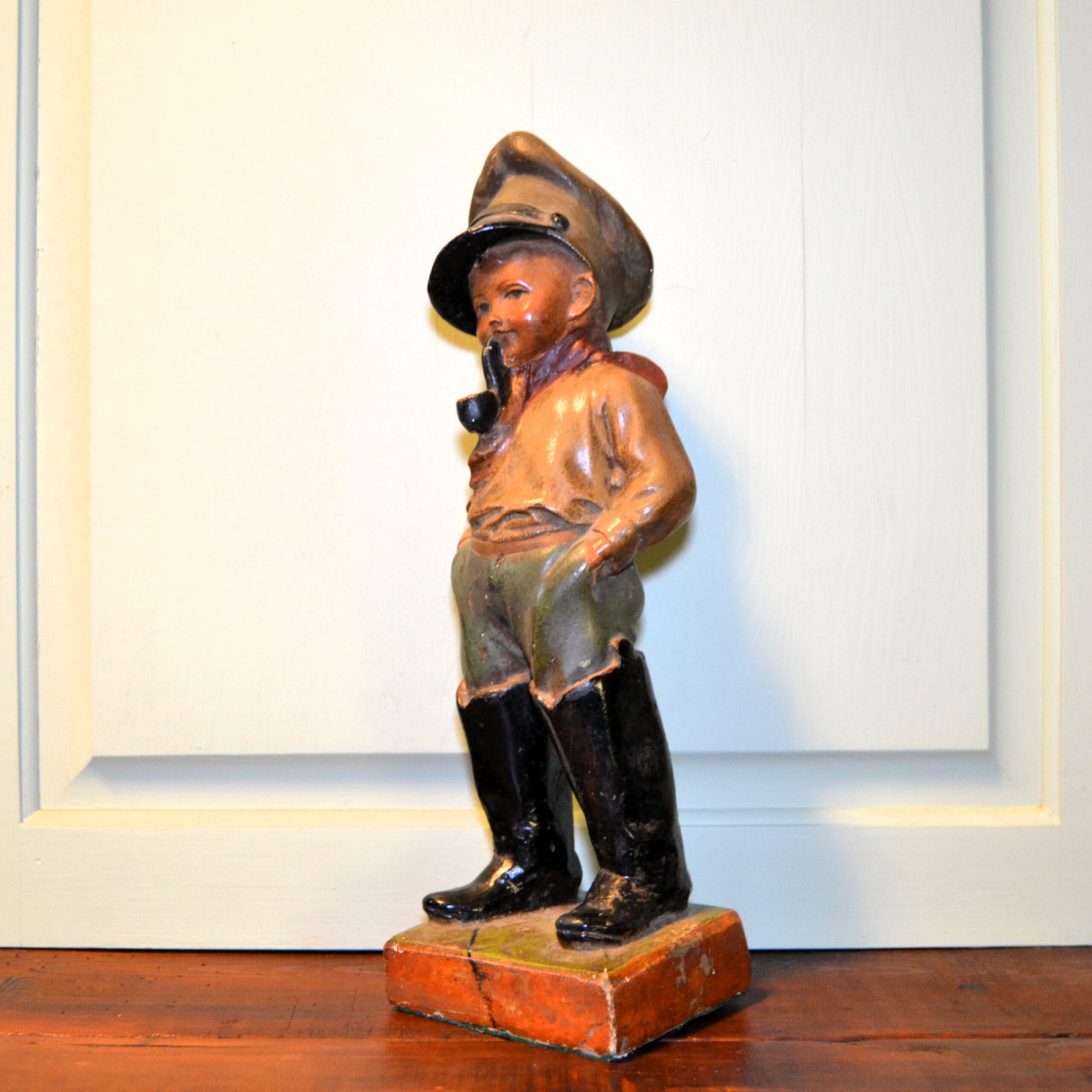 Statuina portoghese in ceramica del 1920 “COMO PAPA'”. Allegoria di bimbo pescatore che imita la postura del papà. Condizioni perfette.
